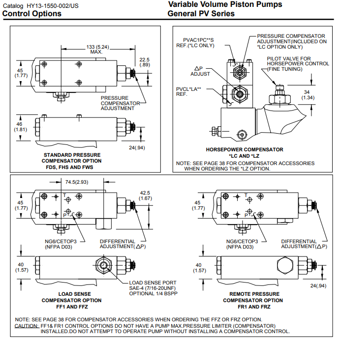 牌派克漢尼汾類型軸向柱塞泵模型PV032移位32.0 毫升/轉(zhuǎn)模式可變排量控制流體力學控制