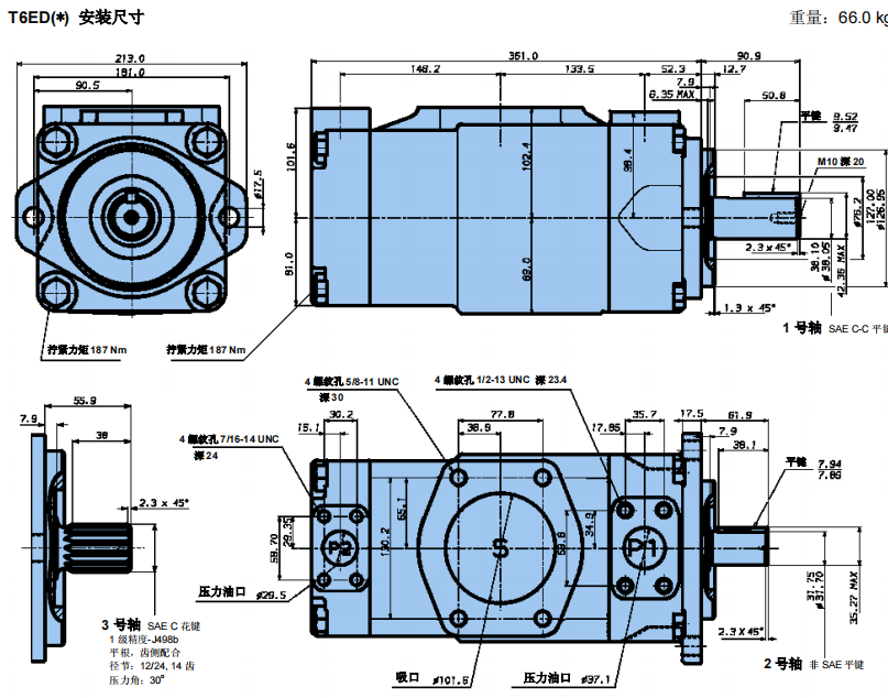 T6EC,T6ED,T6EE系列派克DENISON雙聯(lián)葉片泵安裝尺寸